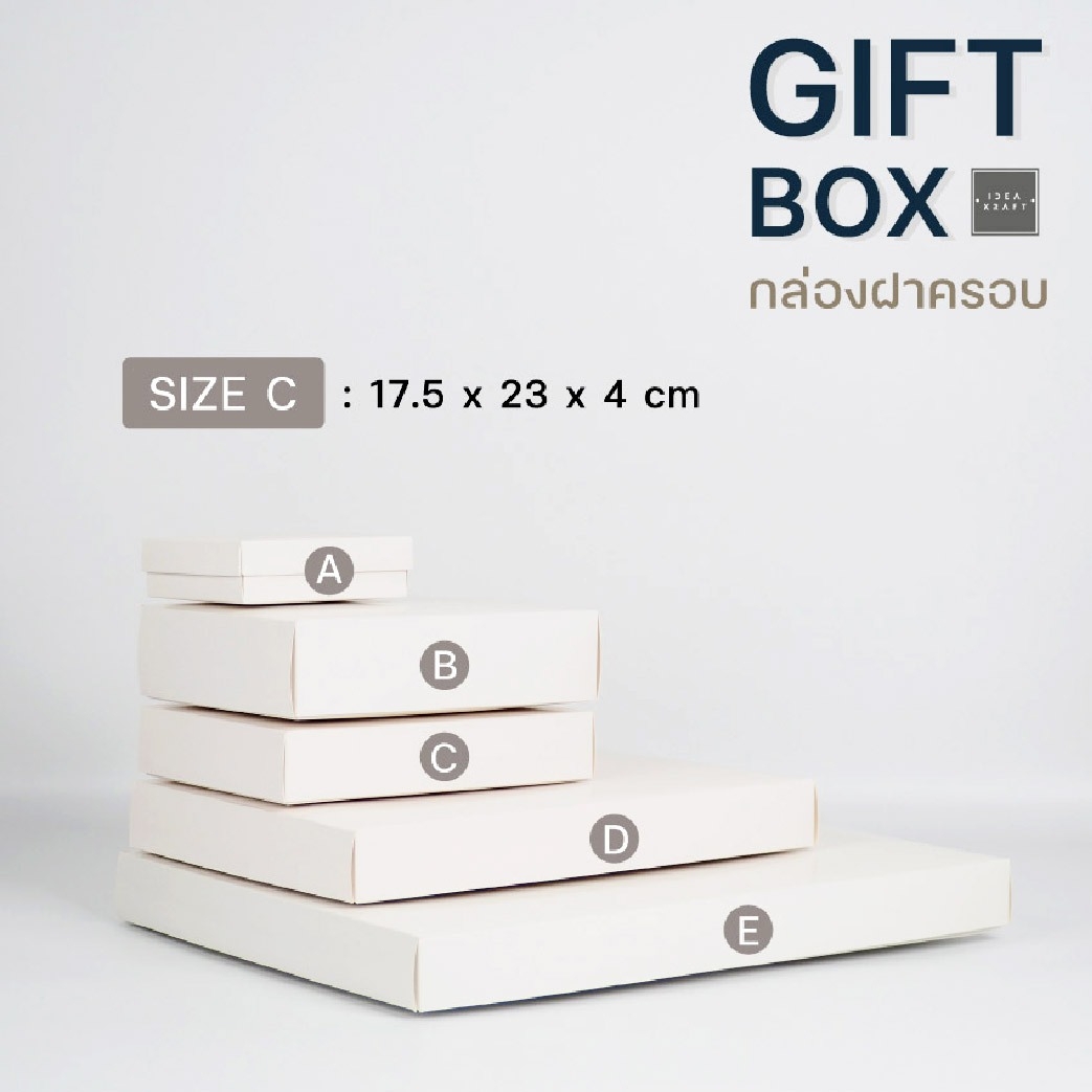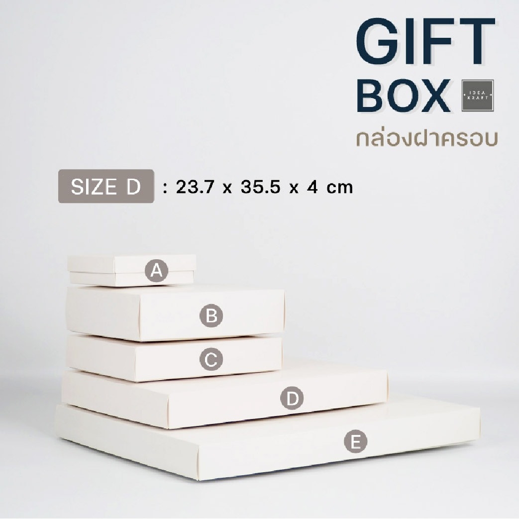เป็นกล่องเพื่อมอบเป็นของขวัญให้กับคนพิเศษ จากกล่องที่เราผลิตเพื่อเป็นของขวัญพิเศษที่มอบแก้ลูกค้าไอเดียคราฟ จนกลายเป็นกล่องสำเร็จรูปให้ลูกค้าทุกคนได้ใช้ด้วยเช่นกัน ด้วยทรงกล่องฝาครอบแบบแบน จึงเหมาะกับสินค้า ทรงแบน หนังสือ กรอบรูป ปฏิทิน ข้าวสาร และอื่นๆ อีกมากมาย ทรงสวย เรียบ พรีเมี่ยม ถูกใจผู้รับแน่นอน