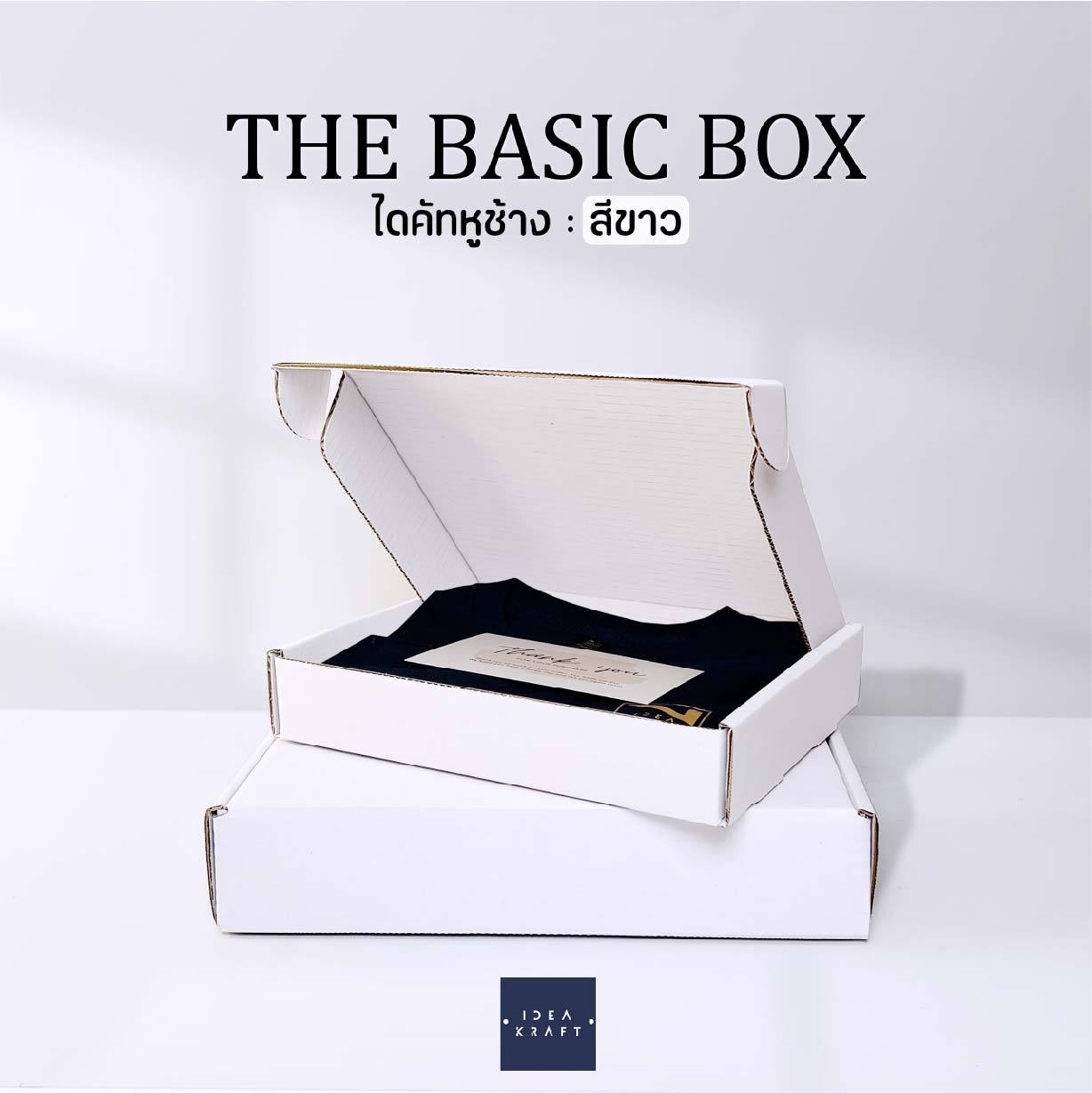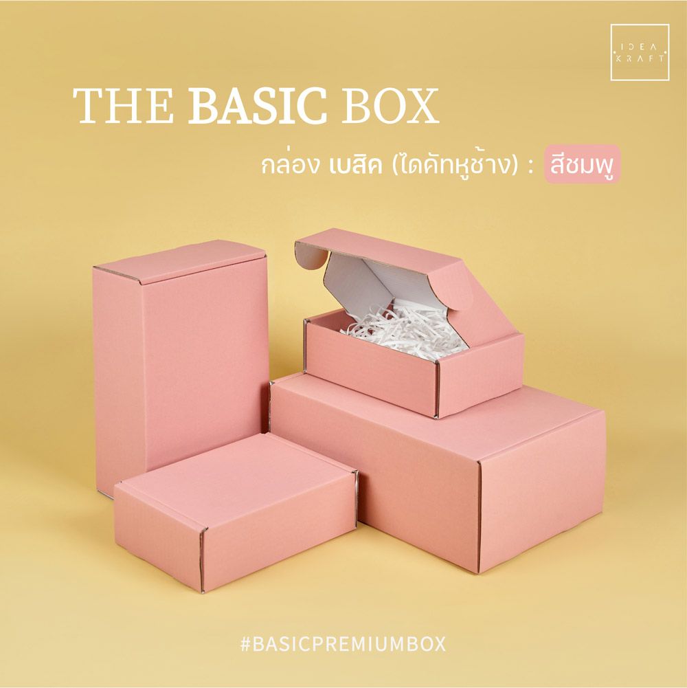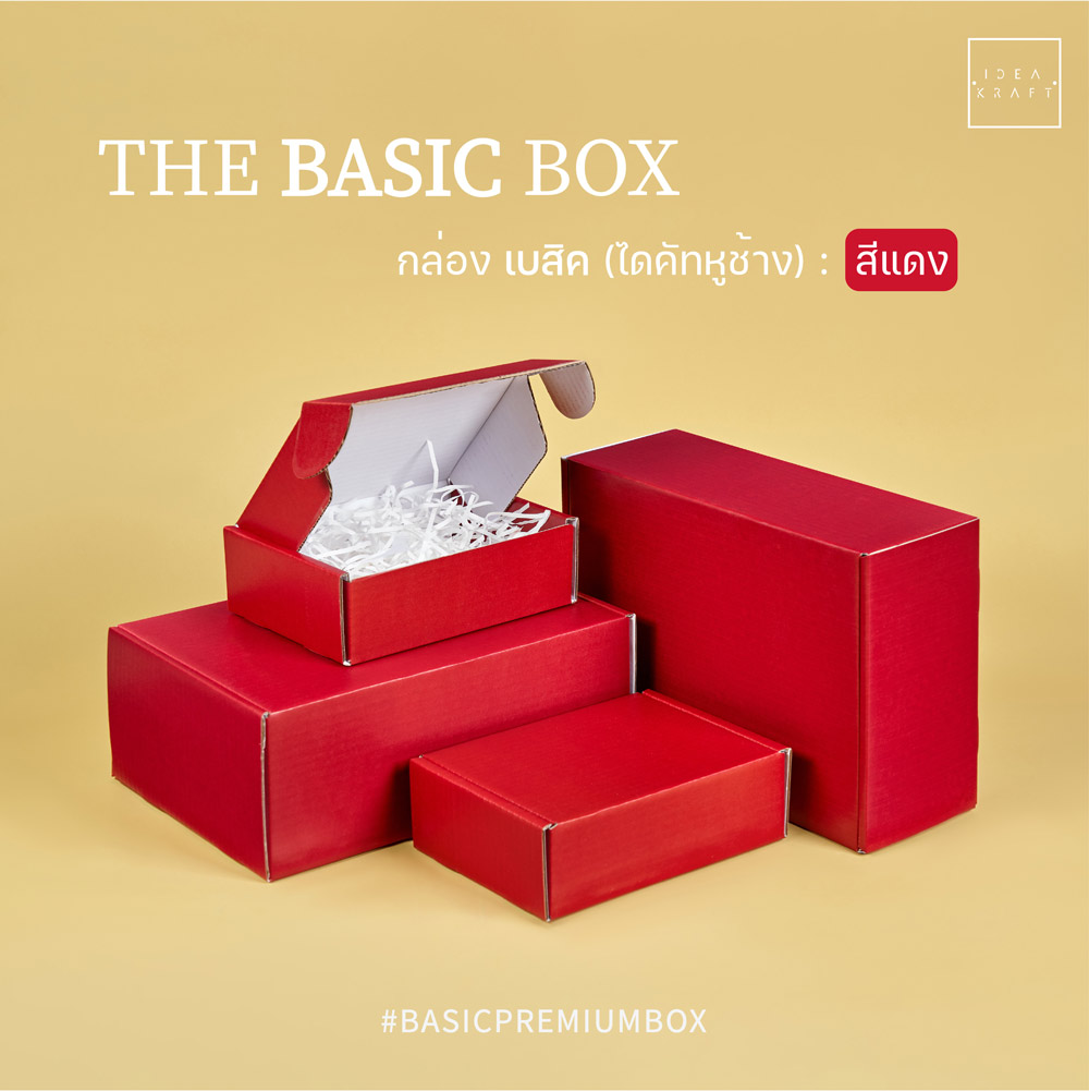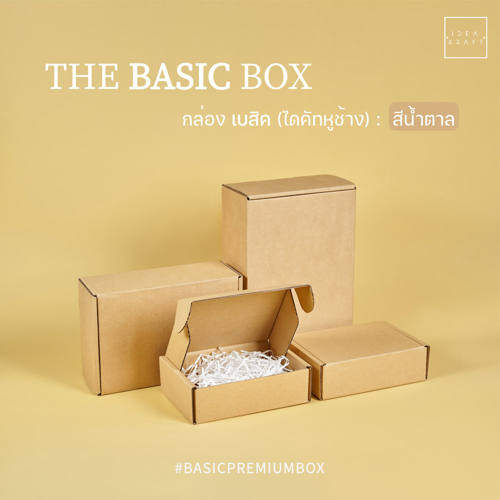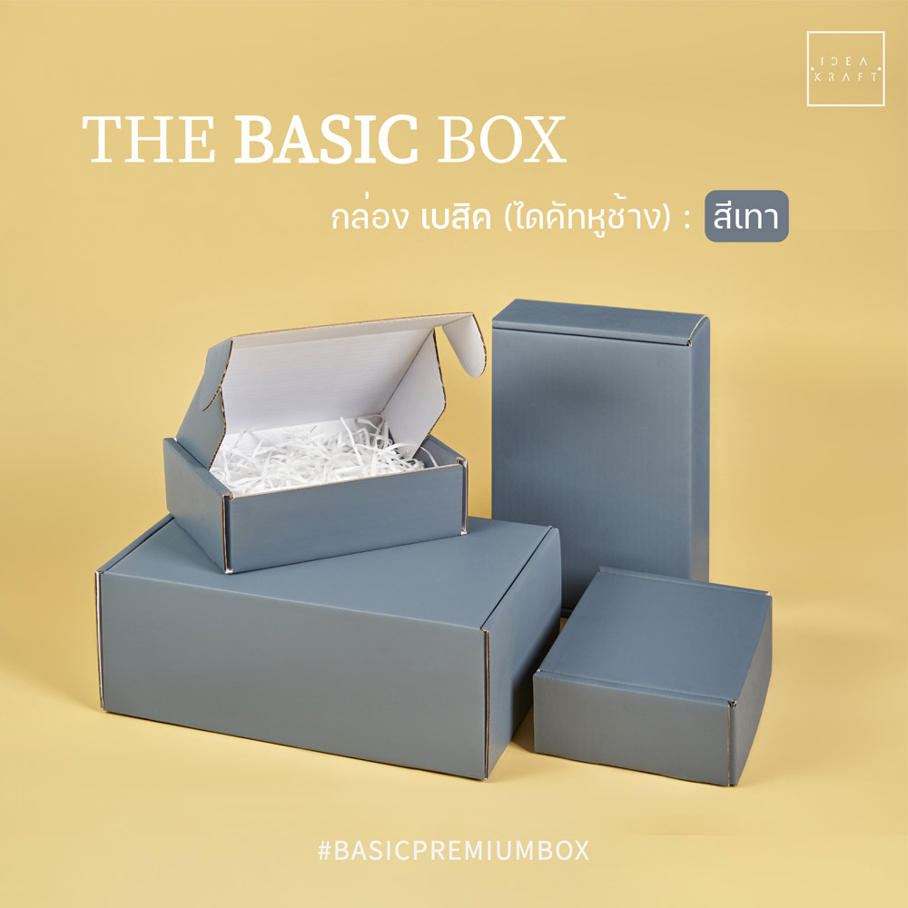 กล่อง The Basic Box เป็นกล่องไดคัทหูช้าง เป็นอีกรูปแบบหนึ่งของใส่บรรจุภัณฑ์ที่ได้รับความนิยมมาก ด้วยทรงกล่องที่แข็งแรง ดีไซน์เรียบหรู สามารถแพ็ค ติดสติ๊กเกอร์แบรนด์ ด้วยสไตล์ของแบรนด์ได้หลากหลาย เพิ่มมูลค่าให้กับตัวสินค้าได้มากขึ้น มีให้เลือกถึง 9 สี 4 ไซซ์