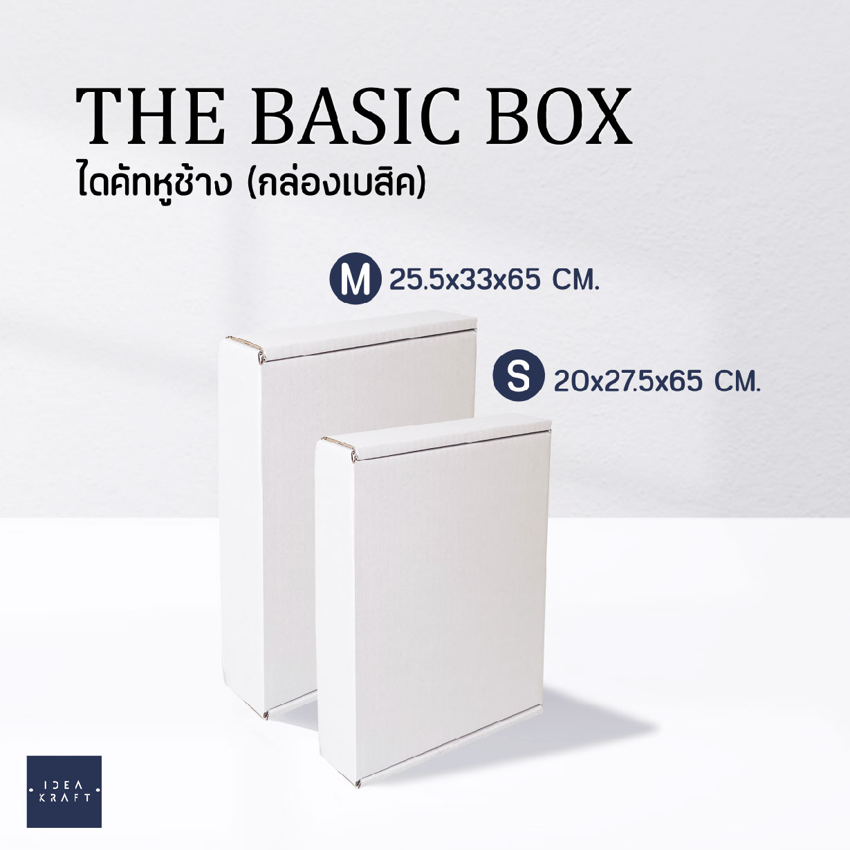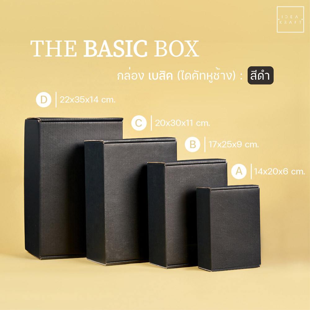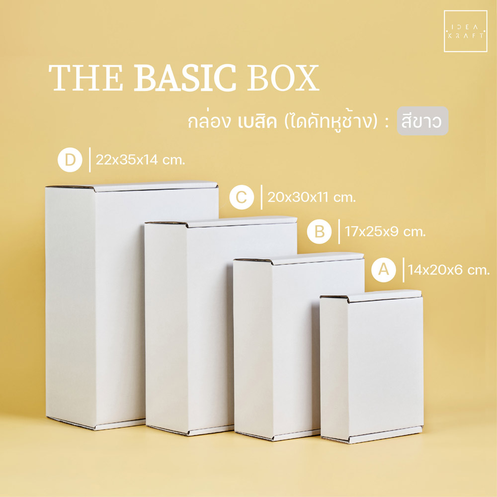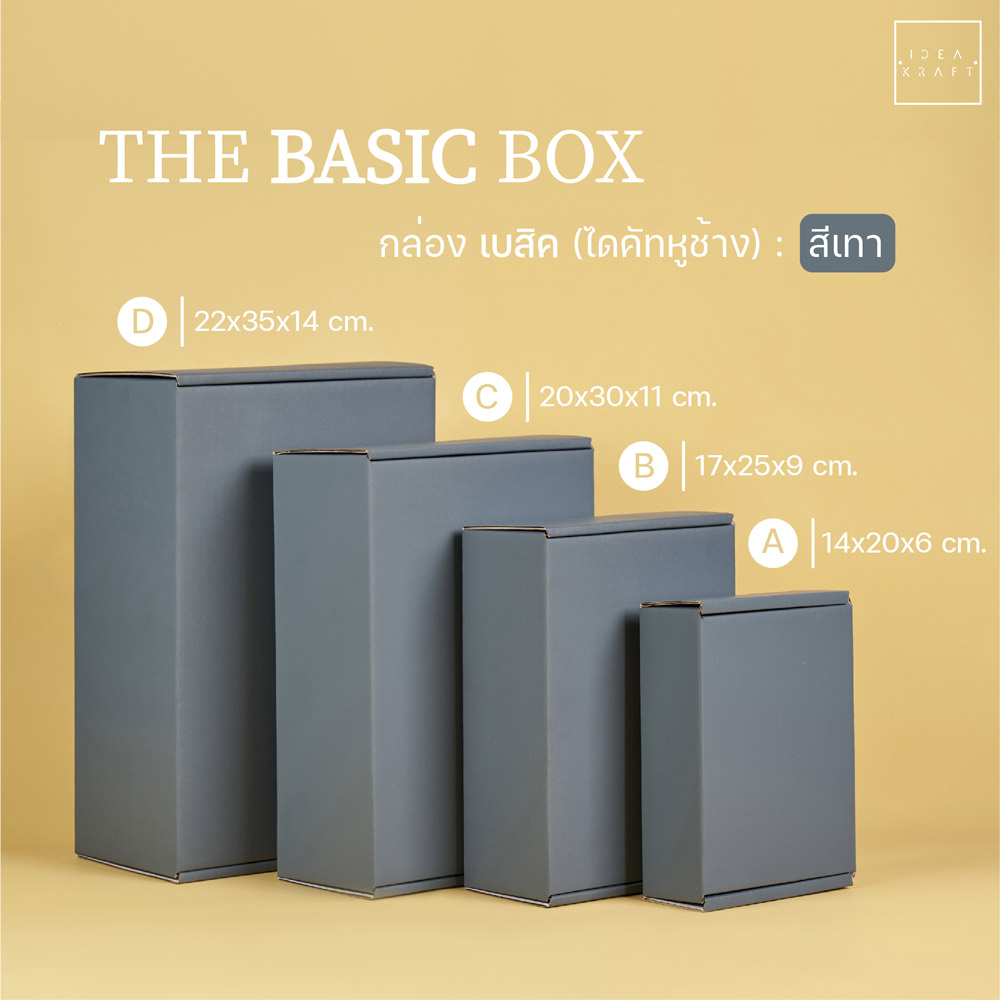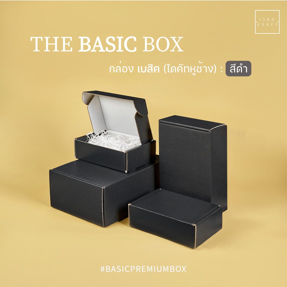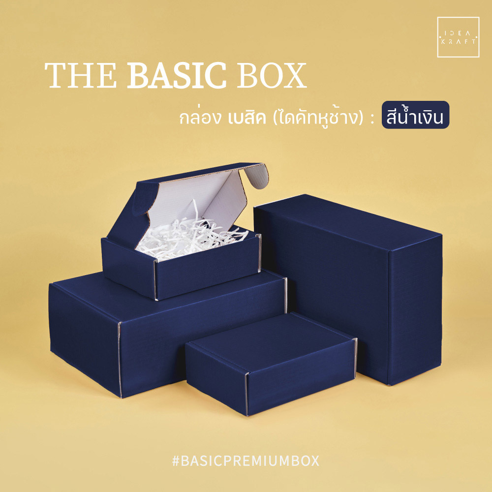 กล่อง The Basic Box เป็นกล่องไดคัทหูช้าง เป็นอีกรูปแบบหนึ่งของใส่บรรจุภัณฑ์ที่ได้รับความนิยมมาก ด้วยทรงกล่องที่แข็งแรง ดีไซน์เรียบหรู สามารถแพ็ค ติดสติ๊กเกอร์แบรนด์ ด้วยสไตล์ของแบรนด์ได้หลากหลาย เพิ่มมูลค่าให้กับตัวสินค้าได้มากขึ้น มีให้เลือกถึง 9 สี 4 ไซซ์